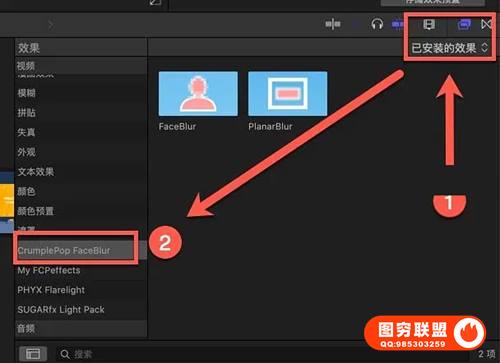 另外CrumplePop FaceBlur插件Final Cut Pro X和AE软件打开Final Cut Pro X,在已经安装好的效果中,你会看到CrumplePop FaceBlur,如图
