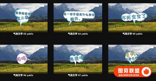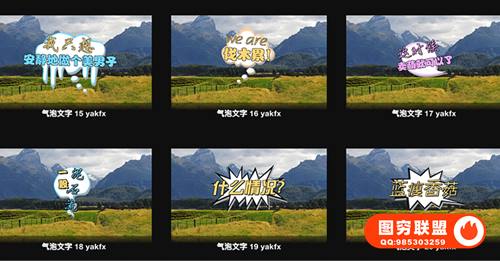综艺娱乐节目气泡字幕元素第2季,包含20个气泡文字和10个卡通元素以及相关音效,自带入出场动画,可修改气泡颜色、大小、旋转以及文字内容、大小、位置、颜色、描边、光晕、阴影等属性,中文参数,操作简单方便。