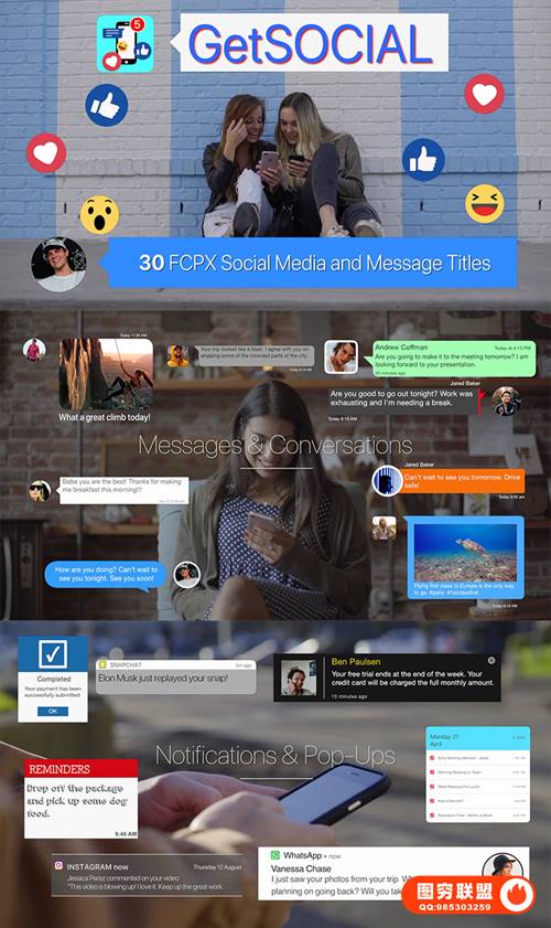 图穷联 » [FCPX插件]30组网络流行对话框信息条小表情动画-Polaric GetSOCIAL