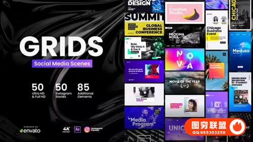 图穷联 » [AE模板]50种社交媒体图文排版设计展示动画包 Grids – Social Media
