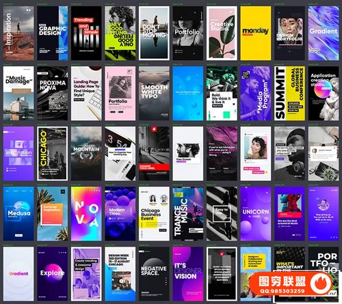 Grids – Social Media Scenes是您产品的优质排版介绍。只是好的设计、节奏和排版。该项目包含 3 种格式的 50 个独特的设计概念。拥有30 种渐变背景,16 个社交媒体图标和18 个动画表情符号。如有必要,只需替换文字并插入您的媒体即可享受结果!这真的很简单。