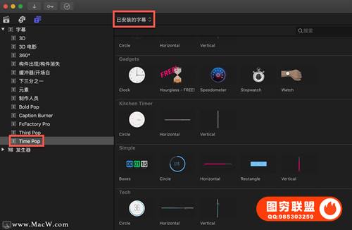 安装完成后,打开FCPX软件,在字幕处即可看到已安装的fcpx插件。
