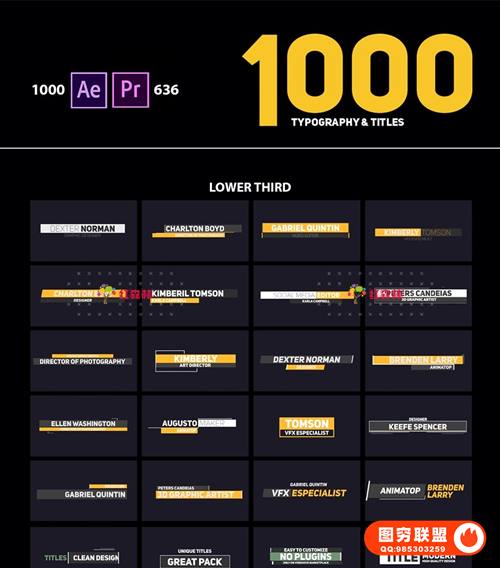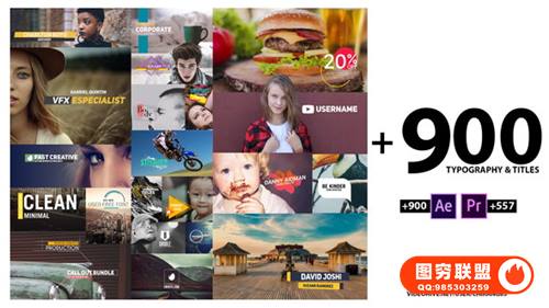 [AE/PR模板]900个文字标题字幕条排版设计动画 900 Typography & Titles
