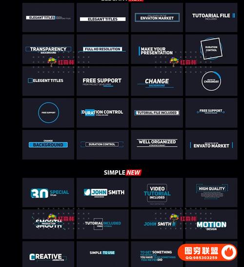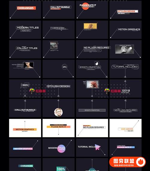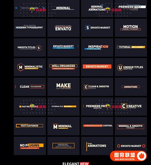 图穷联 » [AE/PR模板]900个文字标题字幕条排版设计动画 900 Typography - T