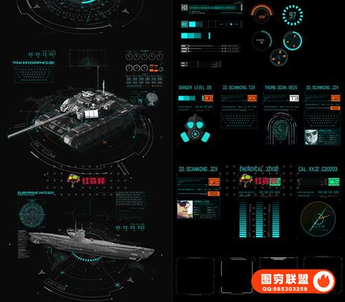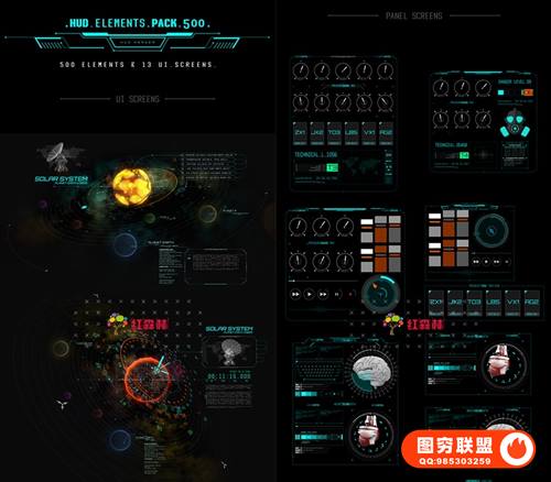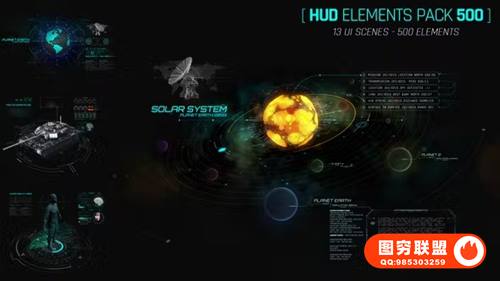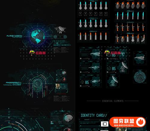 图穷联 » [AE模板]500个HUD科技感银河系军事雷达武器动态UI元素包 Hud Elements