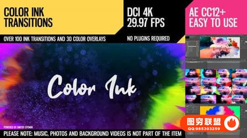 图穷联 » [AE模板]100种彩色水墨溶解扩散遮罩视频过渡转场动画 Color Ink Transi