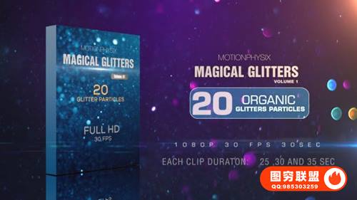 Magical Glitters Vol 1包含 20 个全高清随时可用的闪光颗粒。使用起来非常简单。使用“添加”或“屏幕”混合模式将其放在当前的素材和合成上。它们可以单独使用或相互组合使用更改不透明度以获得更柔和的外观。您可以在任何视频编辑软件上使用它,例如 Adobe Premier、Vegas Pro、FCP 等。