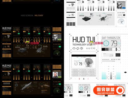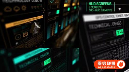 图穷联 » [AE模板]300个HUD屏幕科技感信息图表界面军事科幻元素动画 HUD Screens