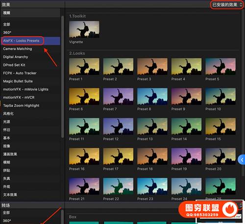 和效果(30个调色特效),文字标题动画(20个调色风格预设;45个文字标题动画字幕),插件简单易用,双击直接安装。还包含131个转场音效和130个4K炫光光效视频素材。