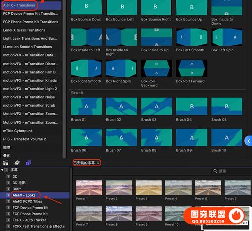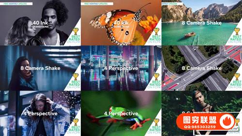 图穷联 » [FCPX插件]1100个冲击缩放旋转弹跳平移滑动扭曲变形抖动水墨转场特效文字标题动画+音