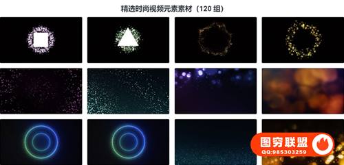 包含内容: 68个循环背景视频,30个展示粒子素材,12个字幕条素材,10个转场素材