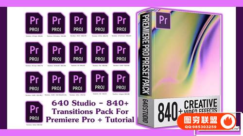 [PR模板]840种扭曲缩放平移变形切割光效旋转无缝视频转场动画 640Studio – 840 Transitions Pack