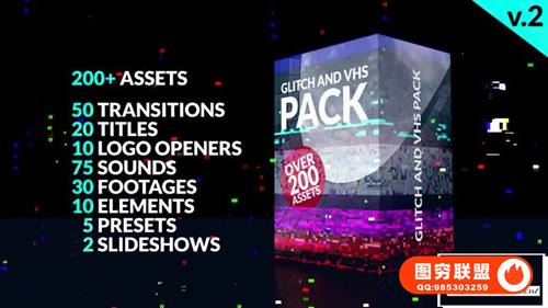 200+ Glitch Pack 是一款功能强大的 Premiere Pro 模板,其中包含:50 个无缝过渡、20 个标题、10 个徽标开场白、2 个幻灯片、75 种声音、30 个片段、10 个元素和 5 个预设。该包包含制作带有故障效果的酷炫时尚视频的一切内容,从过渡和标题到现成的徽标显示和幻灯片。包括视频教程。