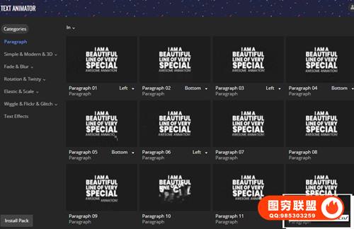 图穷联 » [AE脚本]1200组一键添加文字图层缓入缓出运动特效动画预设 Text Animator