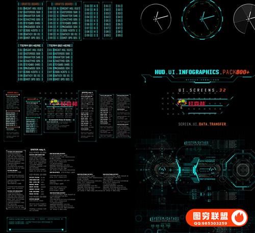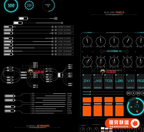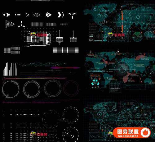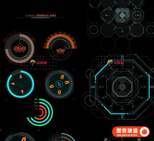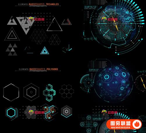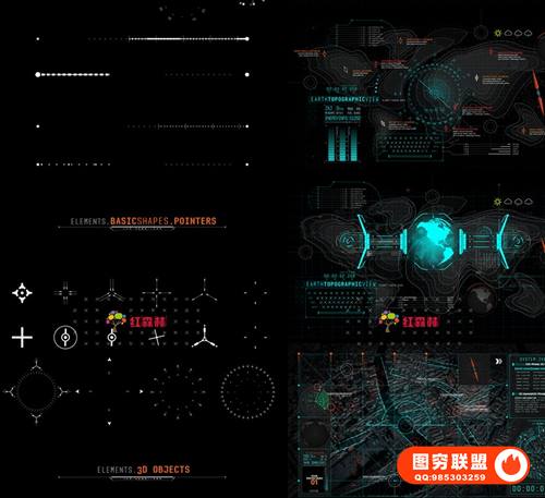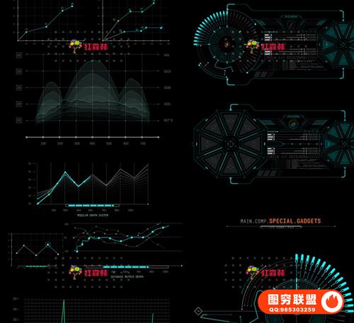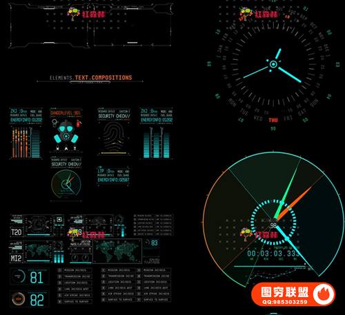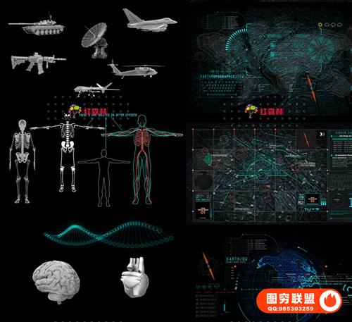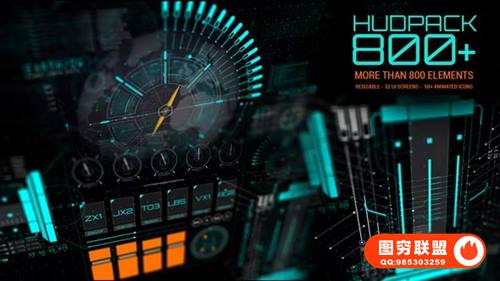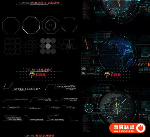 图穷联 » [AE模板]800+高科技电影游戏HUD信息图表科幻UI界面动画元素包 HUD Pack