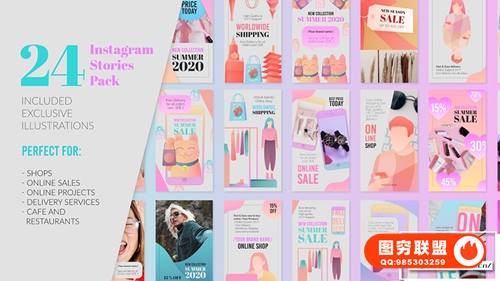 [PR模板]24个可爱粉色少女系手机竖屏封面海报设计包装动画 24 INS Stories Pack
