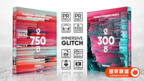 图穷联 » [PR模板/预设]1050种故障干扰音效转场LOGO文字标题毛刺失真视觉特效 Glitch