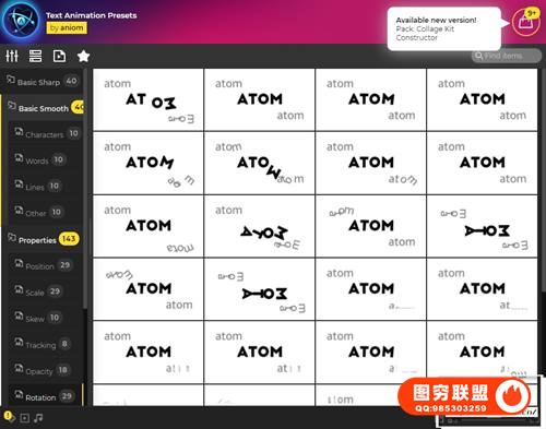 图穷联 » [AE脚本]700组一键快速给文字添加进入退出动画预设 Text Presets Atom