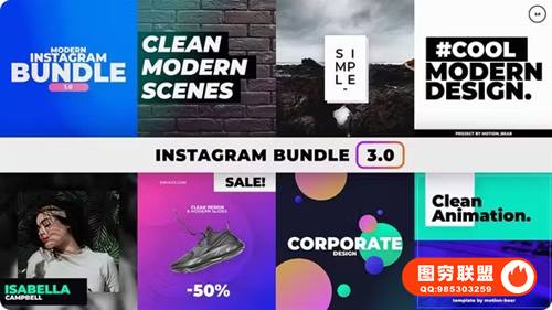 [AE模板]64款时尚产品图文包装应用程序屏幕展示动画 Instagram Bundle 3.0