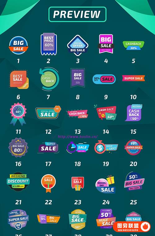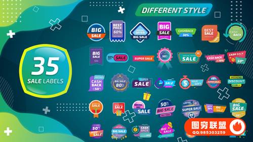 图穷联 » [AE模板]35个商家店铺优惠降价打折促销标签贴纸图形动画模板 Sale Labels