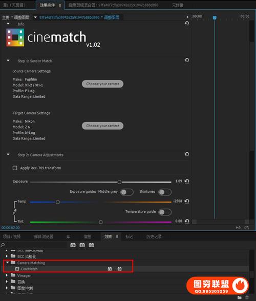 图穷联 » [PR/达芬奇插件]摄像机色彩空间匹配调色插件 CineMatch v1.02 Win破解