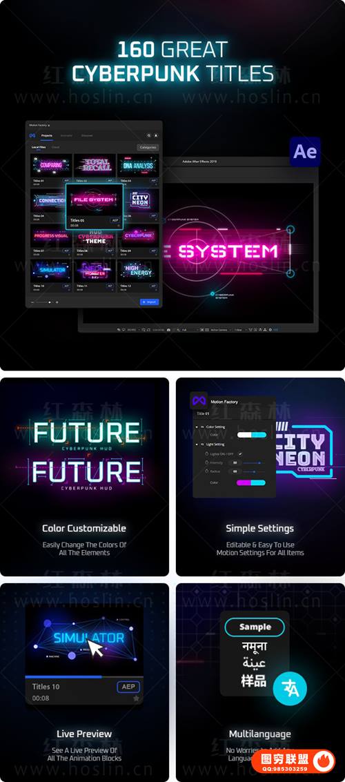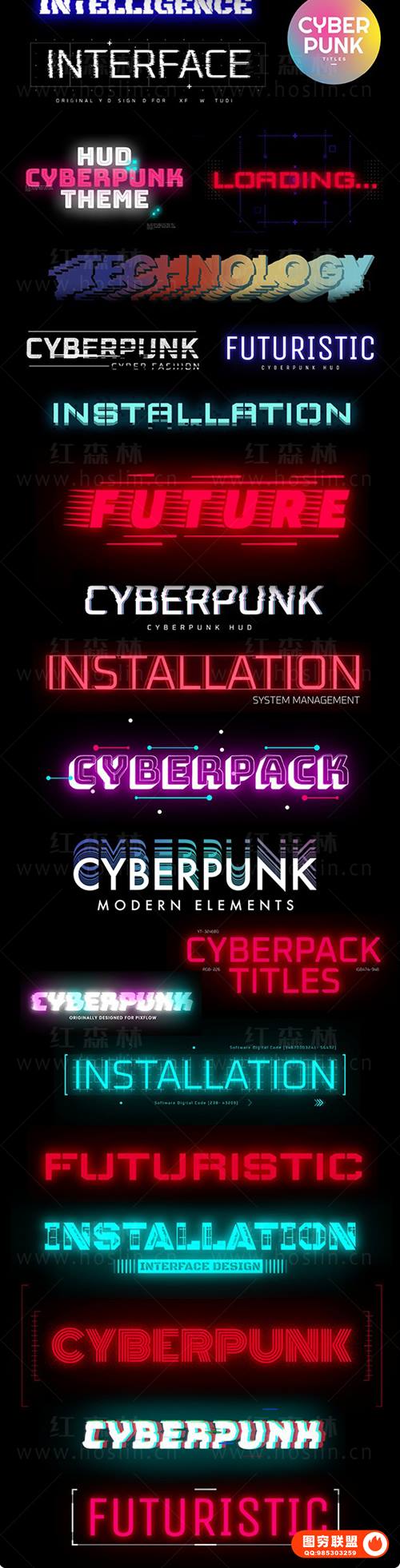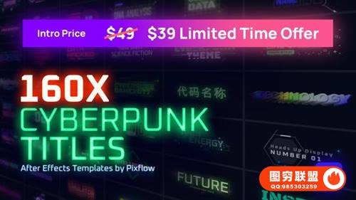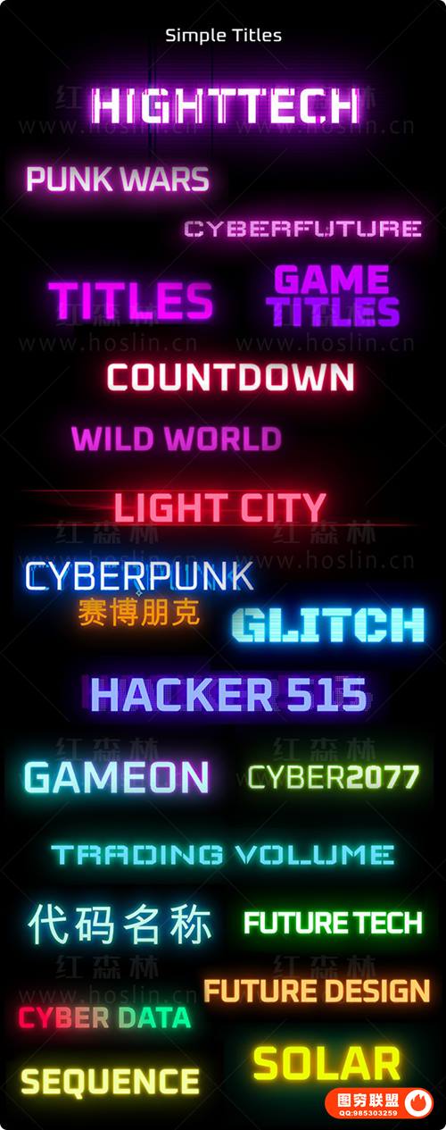图穷联 » [AE脚本]160种科技感赛博朋克霓虹发光文字标题字幕条动画 Cyberpunk Titl