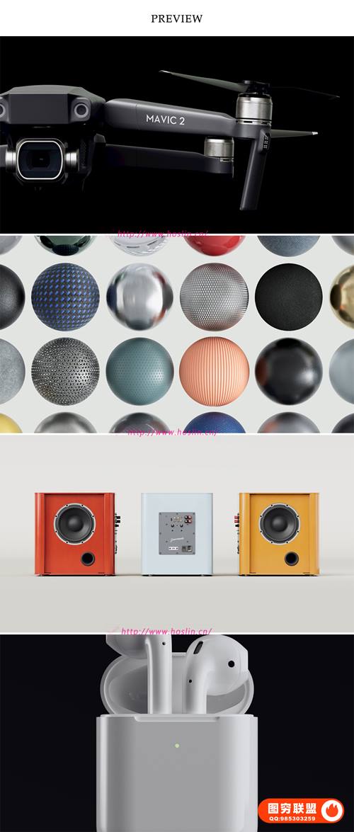 图穷联 » [C4D预设+材质贴图]86组GSG灰猩猩现代科技数码产品材质纹理C4D预设+JPG贴图