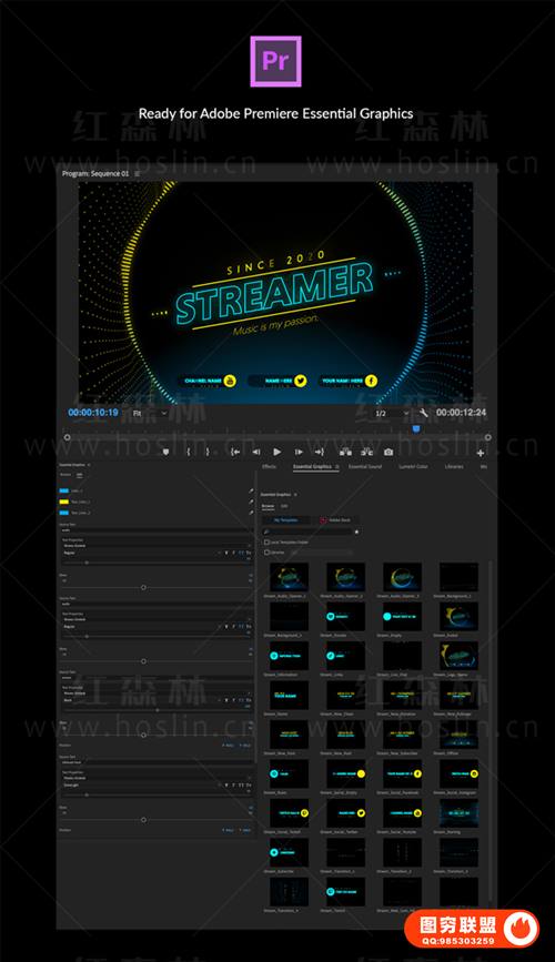 [PR预设/AE模板]音乐制作人频谱可视化宣传包装动画模板 Stream Audio Pack