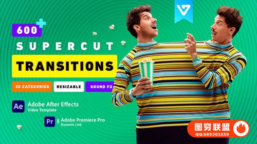 [AE脚本]600个摄像机缩放扭曲移动扭曲变形分割故障干扰转场预设 Transitions SuperCut v1.1