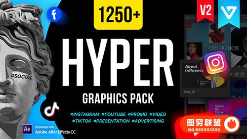[AE脚本]1250个时尚网络社交媒体LOGO标题图文排版设计动画 Hyper – Graphics Pack V2