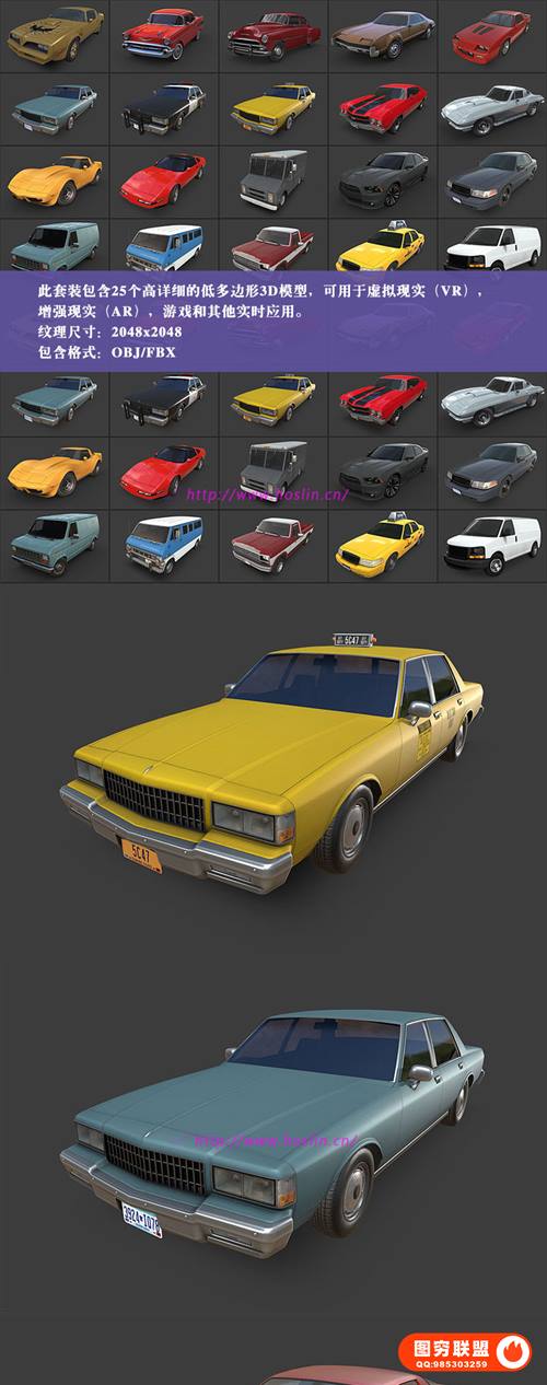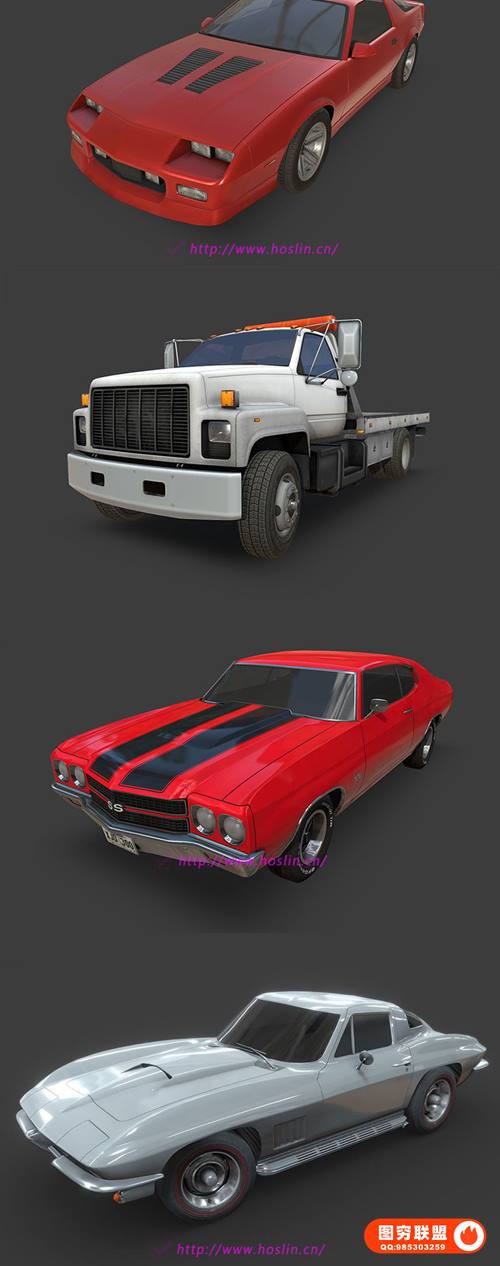 拖车跑车轿车纹理三维模型素材