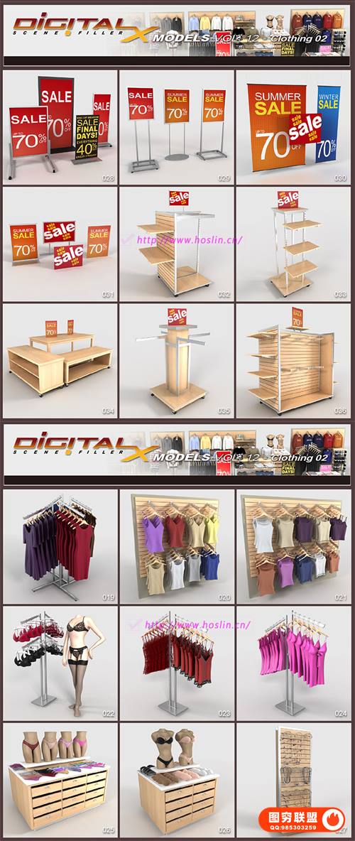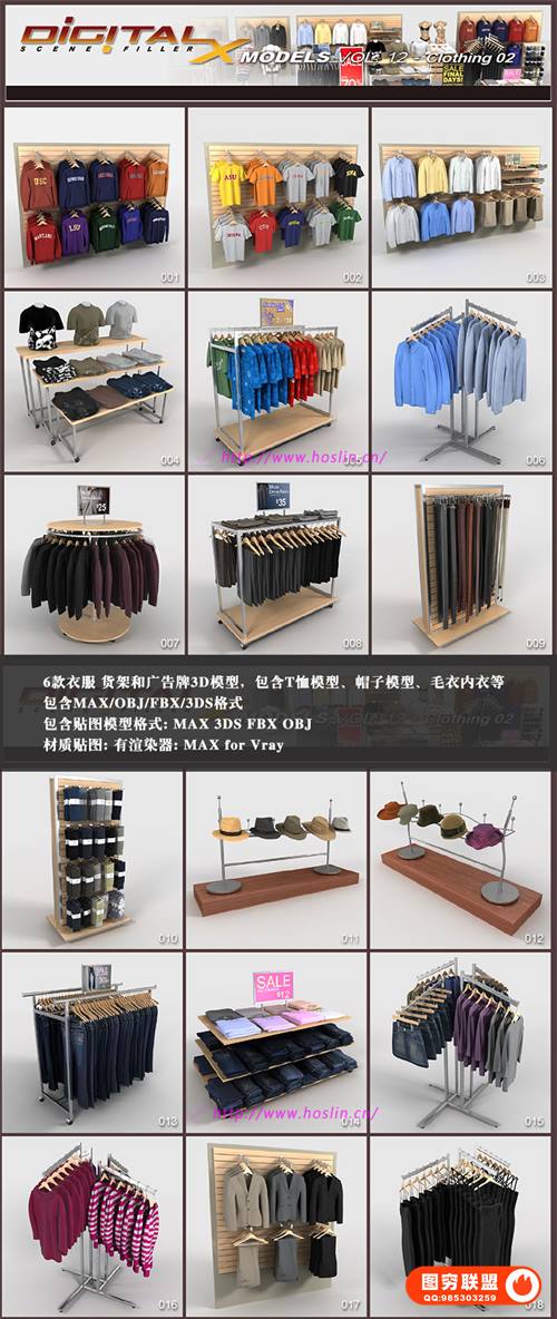 3、C4D 3DS FBX OBJ服装店广告牌
