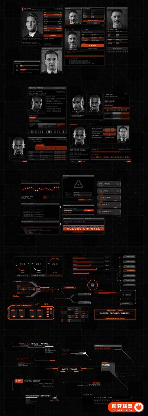 该图形包对于从事科幻视频,赛博朋克电影,高科技界面,游戏中图形,电视节目,横幅广告的人们而言是一种有用的专业工具。该模板包含已经动画化的完整UI屏幕以及可以组合以创建新屏幕的元素。每个元素都有一个输入/输出动画。您所需要的-添加照片/视频,更改颜色并进行渲染。