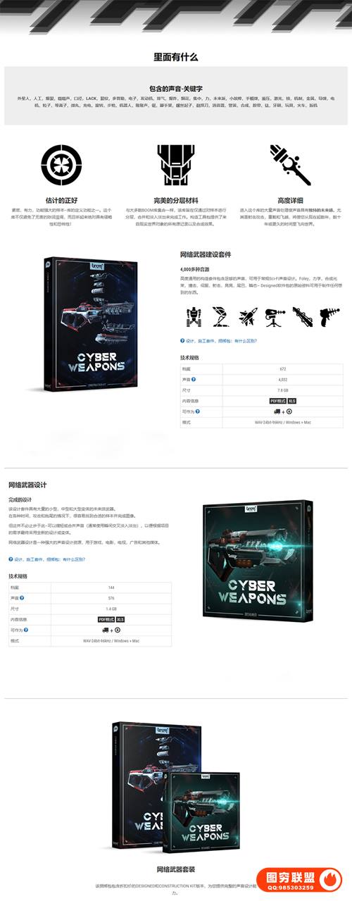 BOOM Library自豪地展示了CYBER WEAPONS,现提供Construction Kit和Designed两个版本,816个WAV文件,约4608种音效;用于未来派,现代和科幻武器的新一代音效库。从小型侧臂级激光器到破坏性的熔化行星光束,此音效包提供了可供选择的整个范围。高度通用的构造Construction Kit套件包含足够的声音,可用于一般的科幻声音设计。Foley,力学,合成光束,撞击,伺服,射击,晃晃,尾巴,瞬态和Designed包的原始资料可用于制作任何想到的东西。