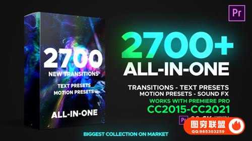 图穷联 » [PR模板/预设]2700种平移缩放扭曲旋转运动图形炫光故障抖动无缝视频转场文字标题动画预