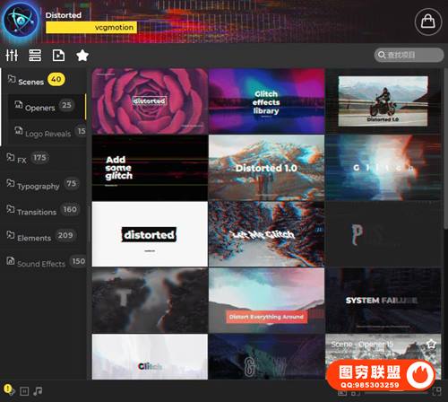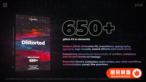 图穷联 » [AE脚本]809个复古故障信号干扰抖动拉伸VHS特效转场LOGO标题音效预设 Glitc