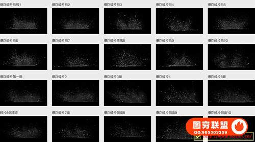 本套素材拥有20组混凝土爆炸碎石飞溅特效动画,包括正视图和侧视图。以2K提供60fps,带Alpha透明通道。