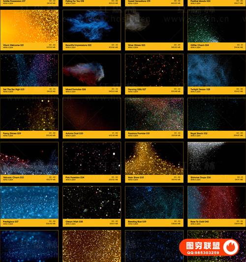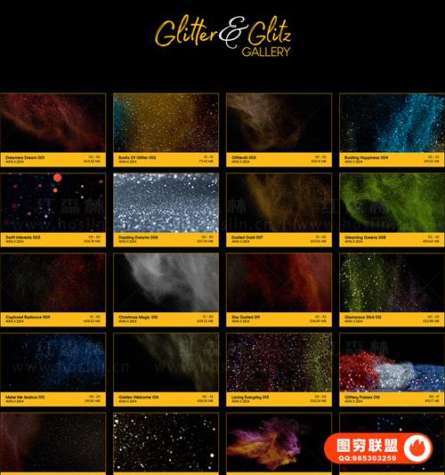 图穷联 » [4K视频素材]104个唯美多彩华丽闪耀发光金粉粒子闪烁合成动画 BBV9 -Glitte