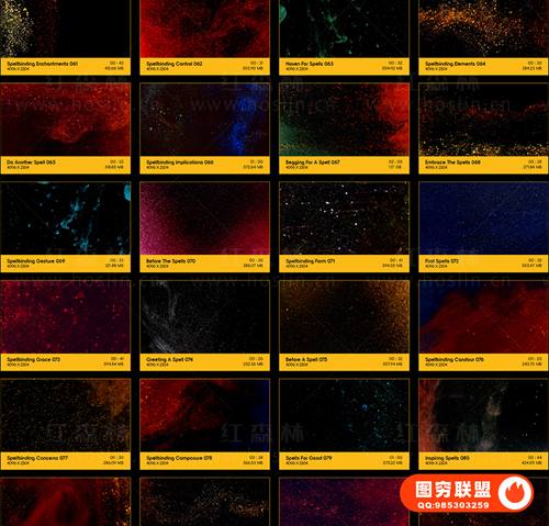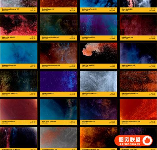 提供91个彩色粉末颗粒溶解液体流动动画 4K视频素材。在Phantom Flex上以高达1000 FPS的速度拍摄,只需拖到您的视频上,无需任何插件,完美用作特殊效果或背景。分辨率:4096*2304,4K高清;无透明通道(可修改混合模式去黑底透明叠加使用)。