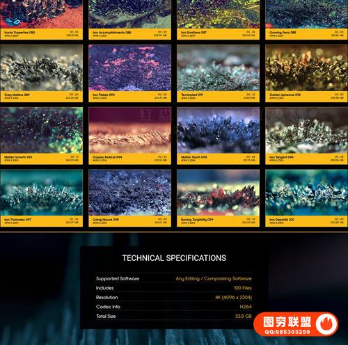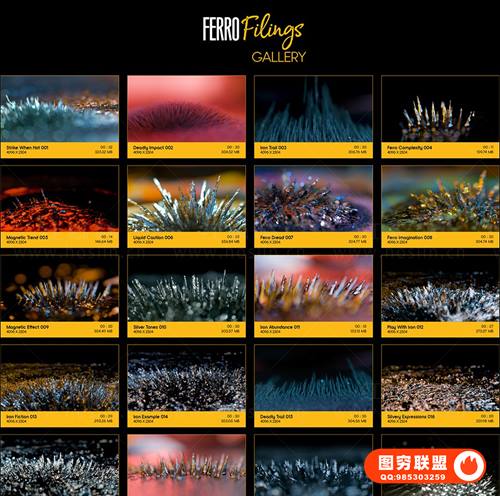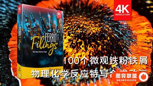 提供100个微观铁屑有机物特写物理化学反应合成动画 4K视频素材。在Phantom Flex上以高达1000 FPS的速度拍摄,只需拖到您的视频上,无需任何插件,完美用作特殊效果或背景。分辨率:4096*2304,4K高清;无透明通道(可修改混合模式去黑底透明叠加使用)。