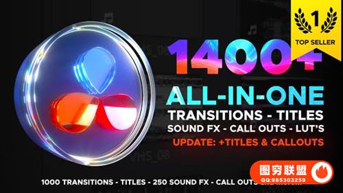 [达芬奇模板]1400种豪华缩放滚动分割旋转故障透视光效遮挡无缝转场LUT调色音效预设 Transitions Library for DaVinci Resolve
