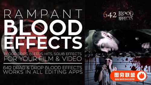 Rampant Blood Effects 是专业设计的各种血液效果的集合,包括:滴落的血水,渗出衣服的出血,命中,血雾,镜头上的血迹,飞溅,快速流血和喷射血液等效果。