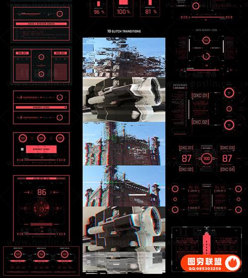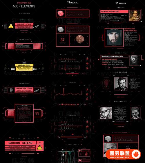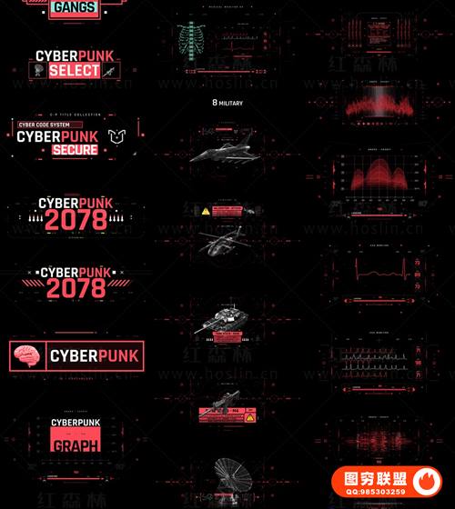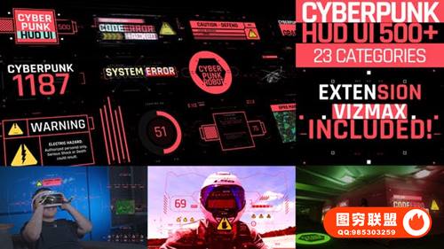 图穷联 » [AE脚本]500个HUD科技感赛博朋克UI界面元素动画预设 Cyberpunk HUD