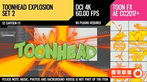 图穷联 » [AE模板]52种4K分辨率卡通效果FX风格爆炸图形元素动画第二套 Toonhead (E