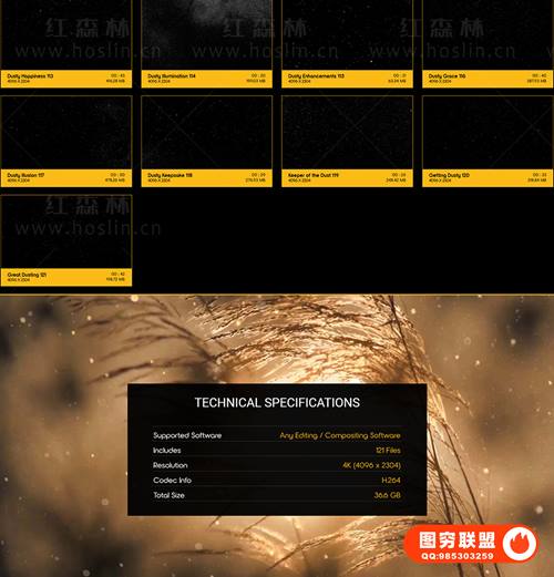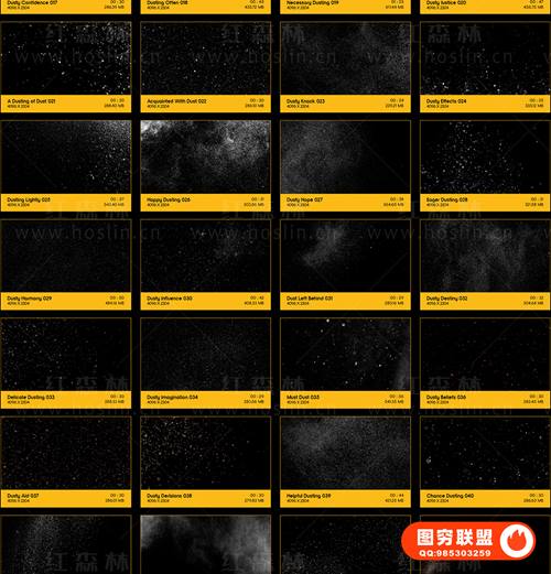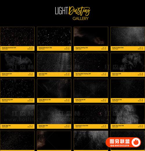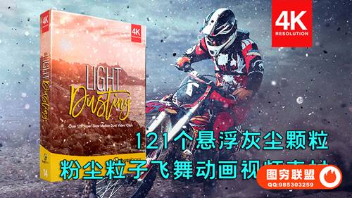 提供121个悬浮粉尘粒颗灰尘粒子飞舞合成动画4K视频素材。在Phantom Flex上以高达1000 FPS的速度拍摄,只需拖到您的视频上,无需任何插件,完美用作特殊效果或背景。分辨率:4096*2304,4K高清;无透明通道(可修改混合模式去黑底透明叠加使用)。