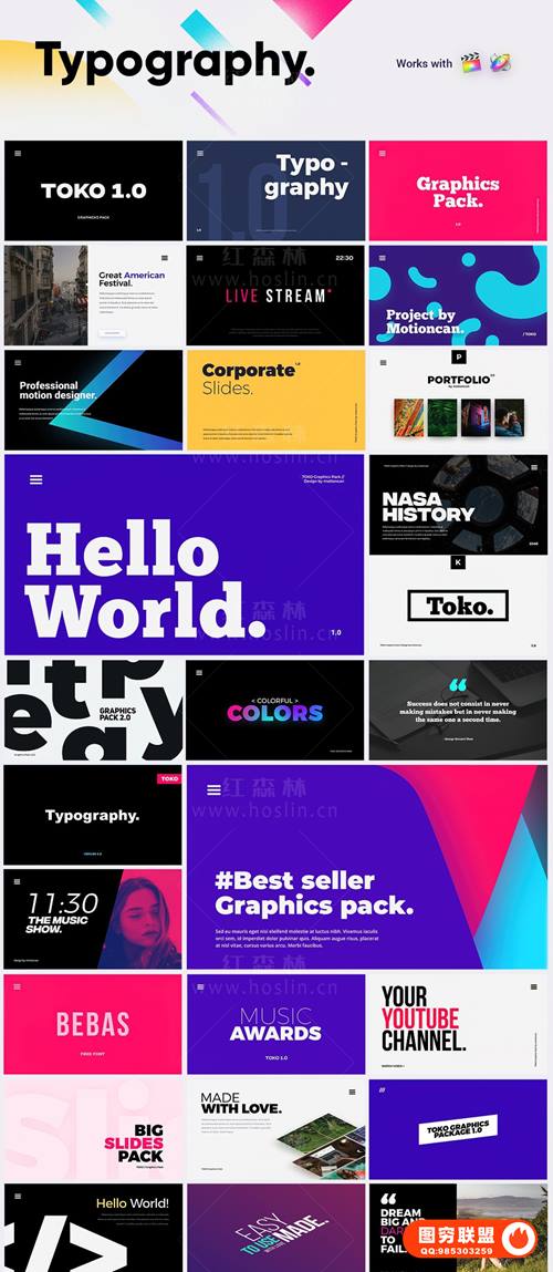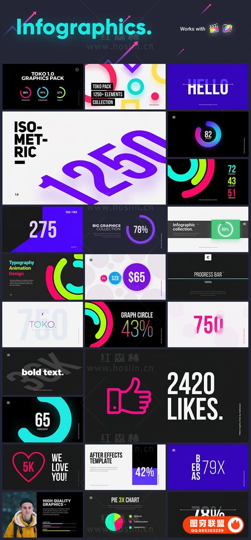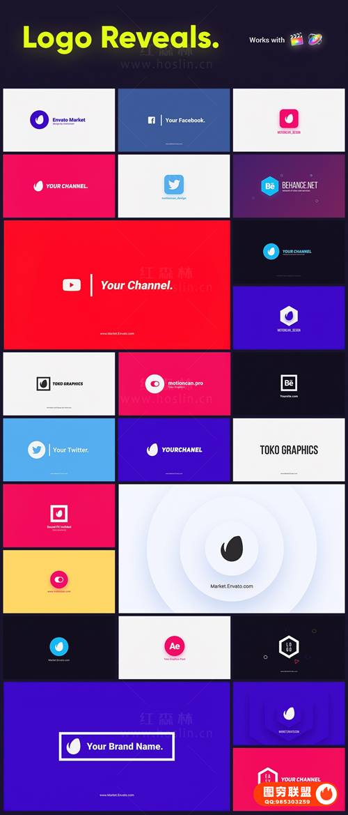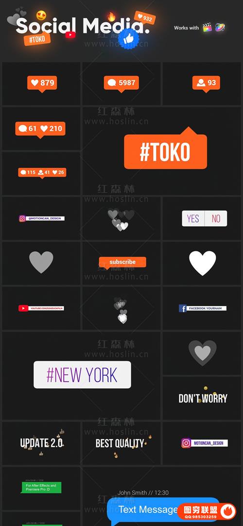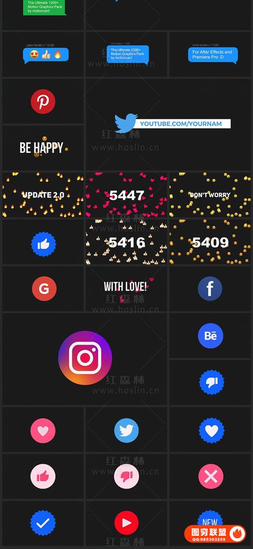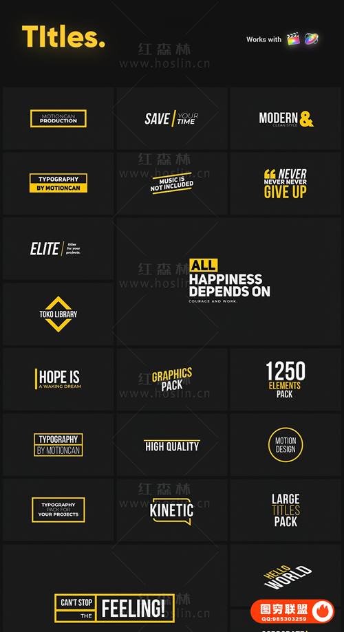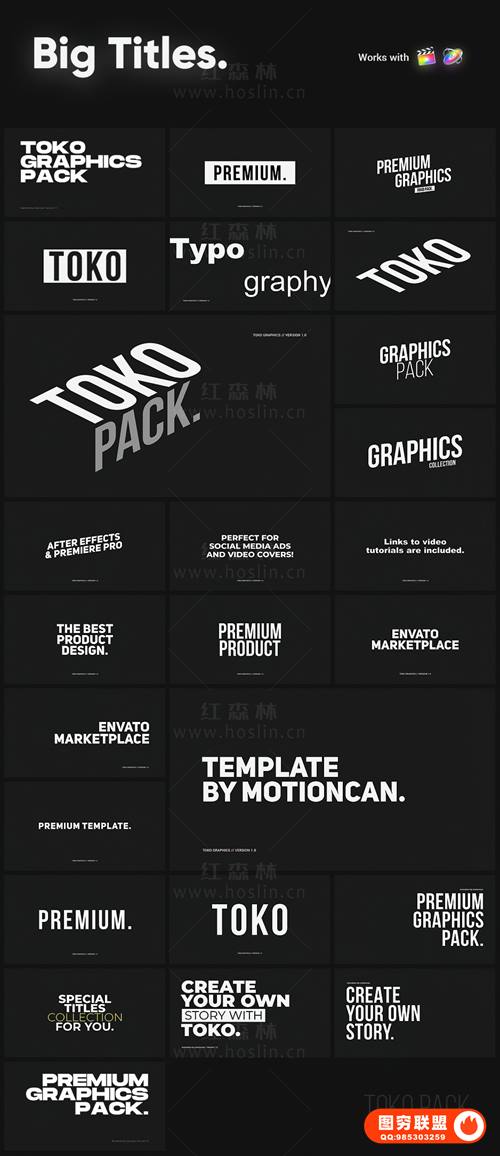 图穷联 » [FCPX插件]1449个社交媒体文字标题排版设计LOGO图形背景动画+转场+音效 Gra