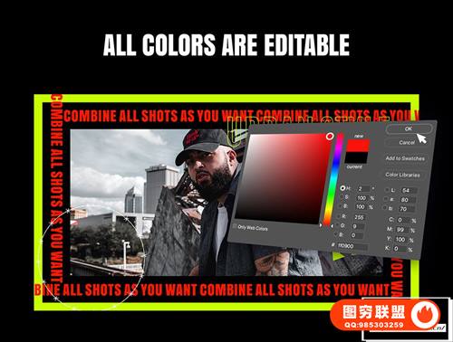 该项目是高度可定制的–您可以更改所需的任何元素。只需单击一下即可添加您自己的内容,更改文本和颜色,使用智能自动调整大小来创建所需的任何构图。