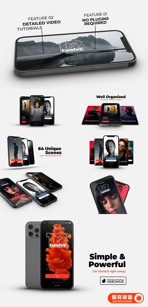 图穷联 » [AE模板/PR脚本]64个三维手机APP应用宣传介绍展示片头动画 Twelve App