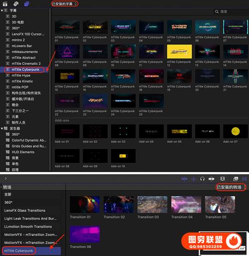 图穷联 » [FCPX插件]55个赛博朋克酷炫科技感标题HUD霓虹灯牌LOGO标题转场动画 motio