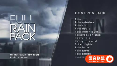 图穷联 » [视频素材]20个真实下雨场景模拟带透明通道视频素材 + AE模板工程 Rain